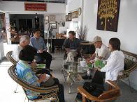 タイ語学校ではタイ語授業を体験してもらった。プライベートレッスンも可能なので、自分のレベルに合わせてタイ語を学べる。タイ語そのものが目的ではなく、プチ滞在の過ごし方のひとつであり、右脳が活性化するという意味でも大変よい機会だろう。 さらに体験授業終了後、教育担当者と懇談のときを持った。日本語教師のアシスタントプログラムを開始するそうで、日本語を教えるということについて、「日本語を客観視でき、また日本語の素晴らしさ、難しさを考える機会となる」という。 チェンマイには「ちゃ~お」という日本語フリーペーパーがある。今回、発行人によるミニセミナーを開いた。チェンマイという都市が日本人にとってどういう場所なのか、チェンマイに滞在するとはどういうことか、さらに日本人として海外(タイ)で活動するにはどういうことを考え、どういう行動をすべきなのかなど、海外滞在と私たち日本人の関係を考えさせられる話題だった。 ボランティアを考える エイズや麻薬中毒・貧困などで親を失った山岳民族の子どもの養護施設「希望の家」でタイが抱える問題を知る機会を持った。 そのほか、チェンマイ北部のサンカンペーンで温泉体験し、休日のピクニック気分を味わってもらい、北タイ雑貨の見学して有名なチークの木彫り、家具などを見て回った。 山岳民族との交流