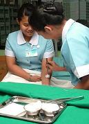 しかも病院内には独自の教育機関を持つ。修了生はタイ教育省から「看護助手」資格を認定される。カリキュラムには高齢者介護が含まれる。タイ古式マッサージや文化、観光、ビジネスマナーについても学ぶほか、日本語、日本文化の科目もある。