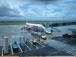 ロンボク南海岸に近くなったロンボク国際空港さて昨年11月、ロンボクの新しい空港が2011年10月に開港したことをお知らせしましたが、この2月に詳しい情報を得ましたので、あらためて写真と共にレポートさせていただきます。 以前の旧空港は州都マタラムから10分程度の場所にあり、飛行場は小さいながらインフラも整備された利便性のある空港でした。新しい空港はロンボク国際空港と名付けられましたが、中部ロンボク・プラヤの町の近くの田園の中に作った空港で、州都マタラムまで車で約50分かかり、まだまだ周辺インフラの整備ができていません。インドネシア政府が繰り返し発表してきた開港時期公表のメンツにこだわったのか、少し無理にオープンした空港のようです。