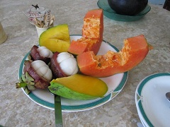 ロンボクの南国フルーツを味わおう 6月となりました。 インドネシアでは雨季から乾季シーズンに変わったばかりで、色々な果物がロンボクのパサール(市場)内の店や露店に出回っています。 また、ロンボクもバリも熱帯地方にあり、基本的に海岸や平地では年中暑いのですが、どちらも3,000m級の火山を持ち、周辺に1,000m前後の涼しい高原地域も数多くあり、涼しい気候が必要な果物類(リンゴ、ミカン、ブドウなど)もたくさん収穫されています。