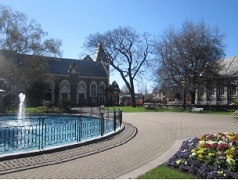 ガーデンシティとしての魅力クライストチャーチ(CHC)がダメージを受けた地震から3度目の春を迎えようとしています。この時期CHCの700を超える公園や家庭の庭には、ますます緑が増え、花も咲き乱れる季節となり、CHCはガーデンシティとしての魅力が溢れ出してきます。 CHCシティセンター近くには日比谷公園の約15倍もあるハグレー公園があり、園内にはゴルフ場、テニスコート、ラクビー場、クリケット場などのスポーツ施設も多く、多くの人がスポーツを楽しんでいます。 また、この公園のまわりには周回する緑に囲まれたウォーキング・コースもあり、多くの人たちが歩いています。CHCロングステイの時は、毎日時間を決めて公園に行き、1時間程度のウォーキングもとてもおすすめです。