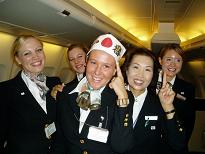 外国人クルーとともに■回想~フライトに捧げた40年 -石川真澄- 1966年、香港をベースとする中国人スチュワーデスが採用されました。彼女たちはスタイル抜群の体に森英恵さんデザインのスリットの入った真っ白な中国風のユニホームをまとっていました。そして中国語しか話せない乗客に重宝されていました。 その後84年にはサンパウロ、88年にはロンドン、フランクフルト、シンガポール、さらに台湾、上海、バンコク、マニラと路線拡張とともにベースも増え、外国人スチュワーデスが定着し、国籍を越えて私たちと一緒に仕事をするようになりました。男性客室乗務員も採用されるようになったいま、フライトアテンダントの3分の1は外国人です。 特にヨーロッパ人クルーの中には日本がどこにあるのかも知らない人が多く、日本に着くや否や成田にある狭い寮に入れられ、羽田の訓練所に通って日本語と機内サービス、緊急避難訓練に明け暮れます。社員食堂では食べたこともない食事を口にしなければなりません。訓練中は薄給なので外食もできず、白いご飯にマヨネーズとしょうゆをかけて食べている姿をよく見かけました。こうして多くのカルチャーショックを受けながら一人前のクルーに仕立て上げられていくのです。 普段の食事でも納豆ご飯が大好物になったヨーロッパ人もいました。またインスタントラーメンにタバスコとレモンの絞り汁をかけてトムヤンクン風に仕上げるなど、外国人クルーたちは限られた中で工夫することが得意になります。 バブル全盛期、私たちにも素敵な経験がありました。そのころヨーロッパステーションクルーというシステムがありました。ロンドン、パリ、コペンハーゲン、デュッセルドルフにクルーを配置し、3~4カ月交代で成田から飛んできた機材を最終目的地まで乗務するというものです。私は秋から冬にかけてのロンドンに行ったのですが、フライトのない日の朝は落ち葉のハイドパークをジョギングして語学学校に通い、夜は大好きなオペラやコンサート、ミュージカルを堪能し、天気のよい日には知らない町に出かけたこともありました。いまでは考えられないほど世の中すべてが潤っていた時代に仕事ができ、恵まれた環境にあったと思います。